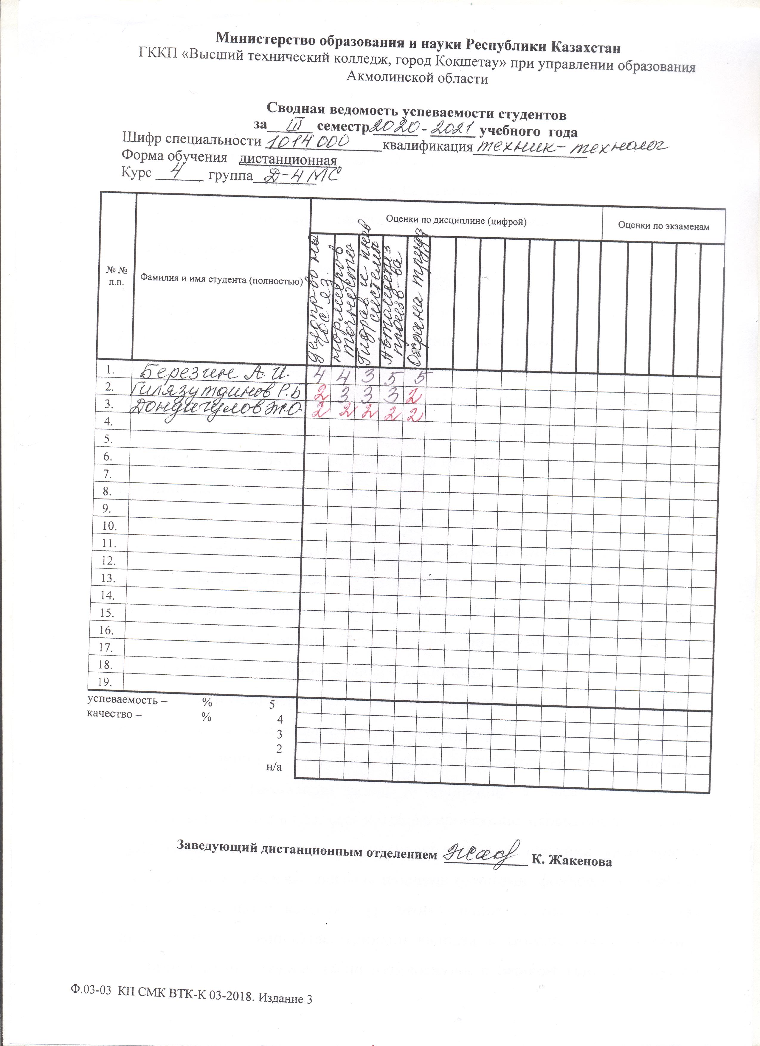 Заочное отделениеУрокиСводная ведомость группы Д-4 МС