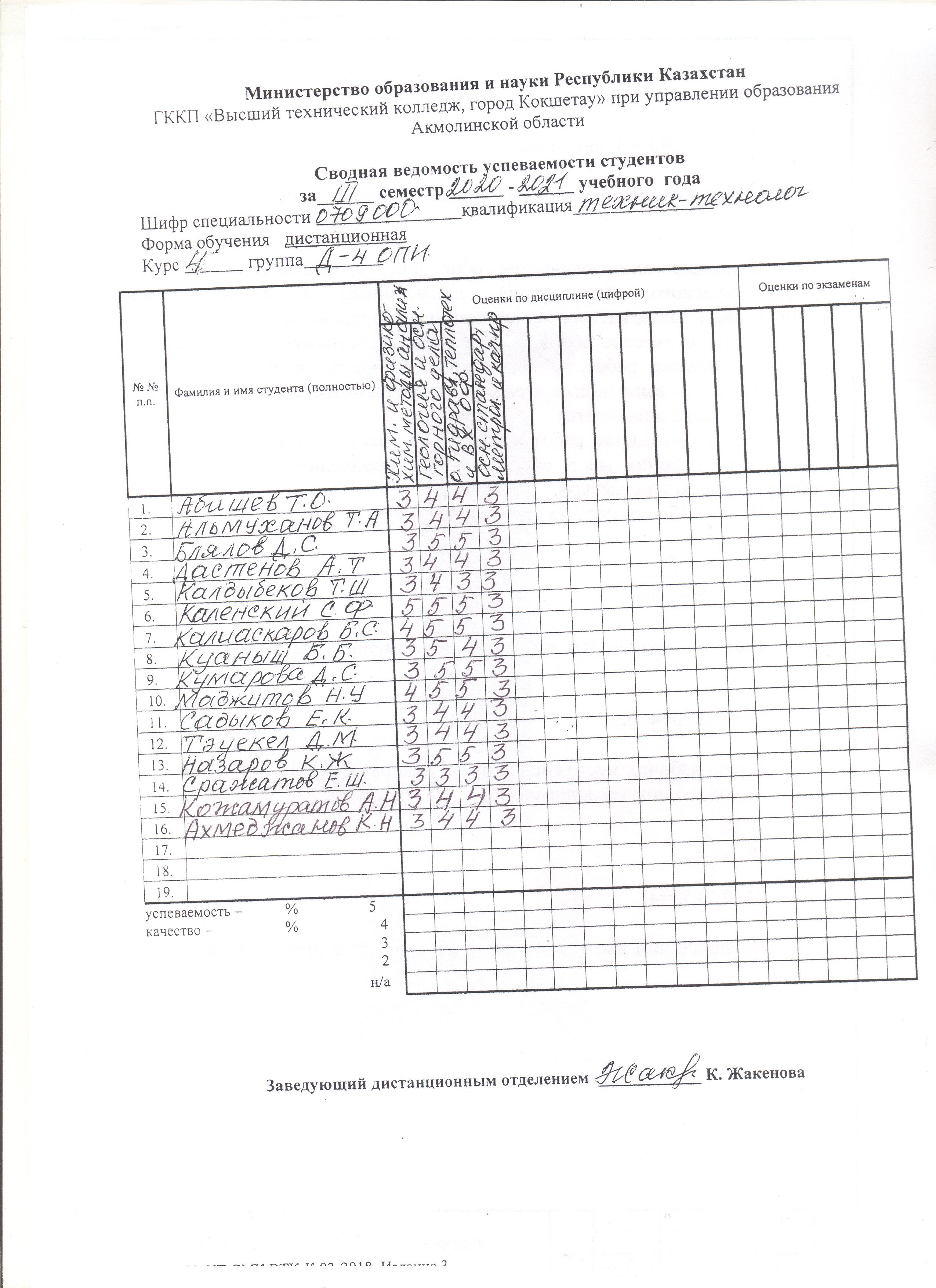 Сводная ведомость группы Д-4 ОПИ
