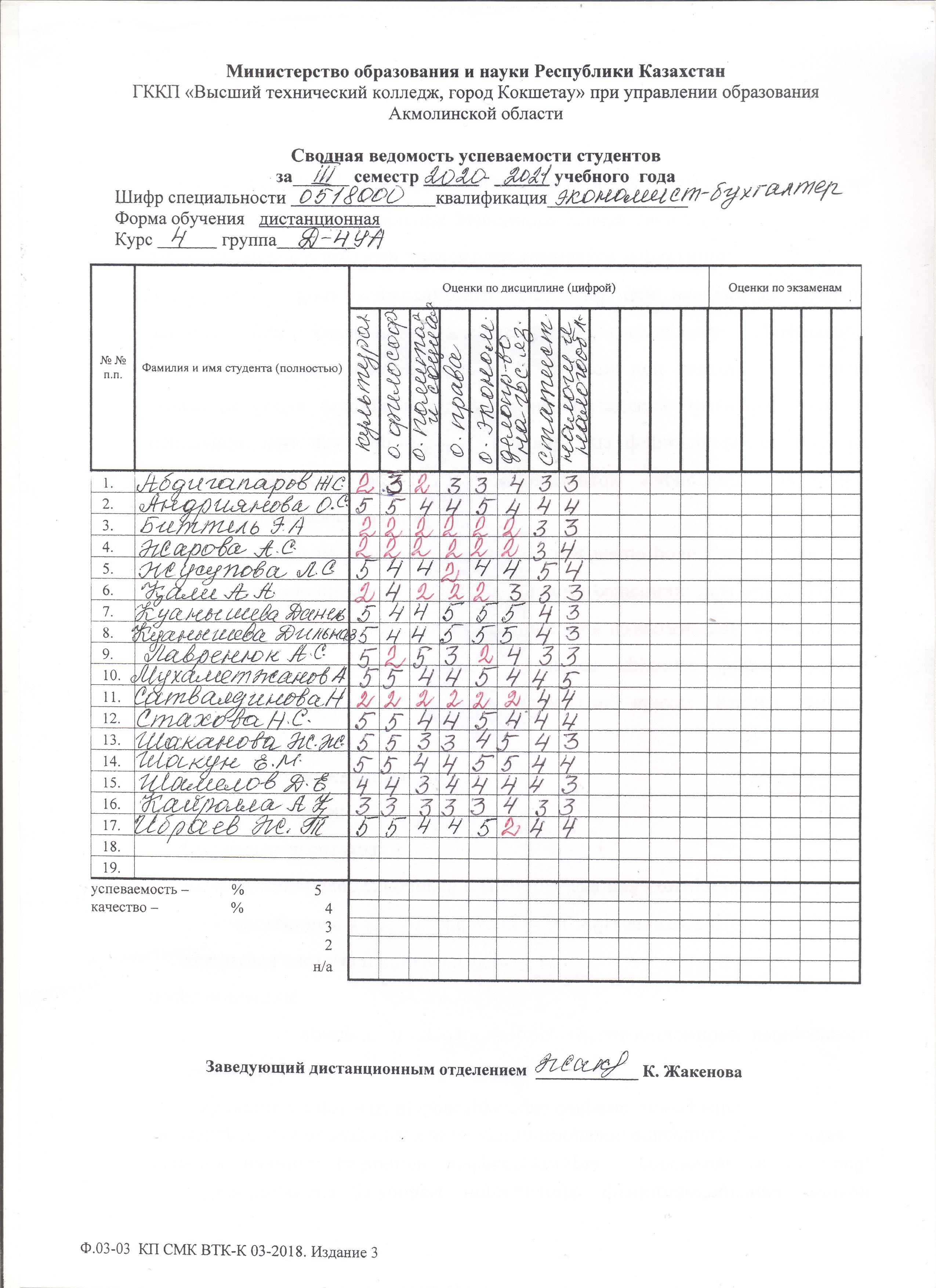 Заочное отделениеУрокиСводная ведомость группы Д-4 УА